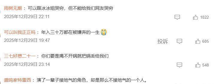 很快闫学晶的相关言论和视频切片就大肆流传,引发了大范围的讨论。相关词条下的评论区可谓是金句频出,“可以跟冰冰姐哭穷,但别跟网友哭穷”,“演了一辈子接地气的角色,本人却那么不接地气”。