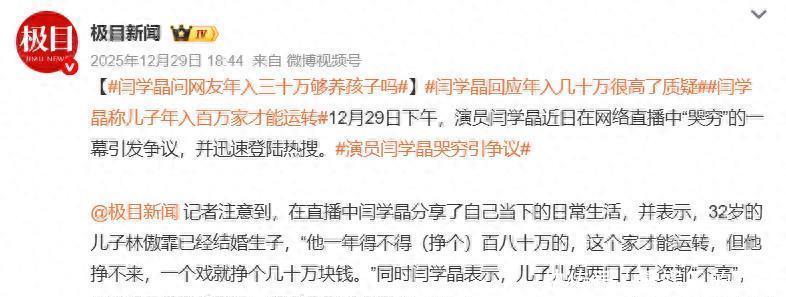 12�日,女演员闫学晶在直播时脱口而出的一句“在北京儿子一年得挣个百八十万才够用”的感慨瞬间引爆舆论。她这番带着“卖惨哭穷”意味的言论,不但没有换来同情和共鸣,反而点燃了大家的怒火。
